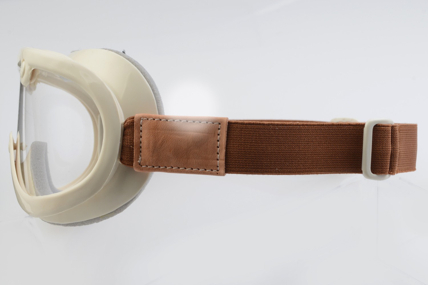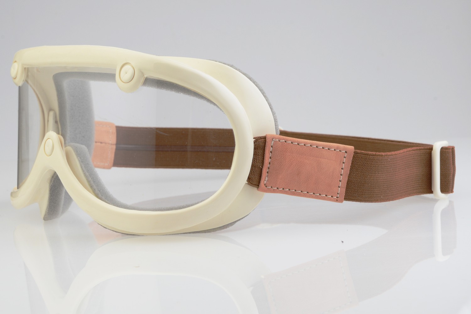 1940年代には保護眼鏡へと生産の幅が広がっていくことになる。ちょうどその頃、欧米ではスキーを始めとするアウトドア・ゴーグルやモータースポーツゴーグルの需要が飛躍的に伸び、その波は日本へとやってくる。GREASER 60’s VINTAGE GOGGLEは、まさにその時代のそのもの。